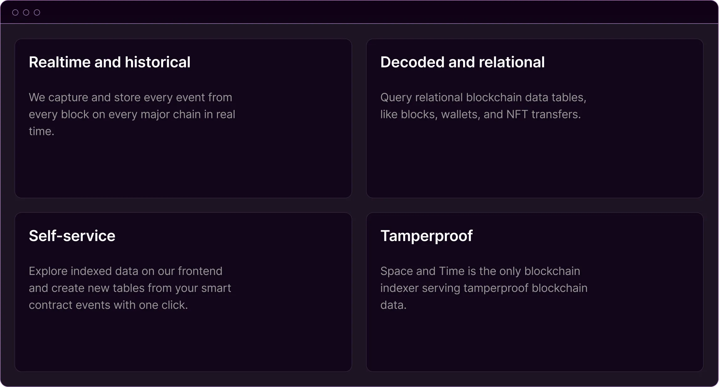 Space and Time blockchain indexing service