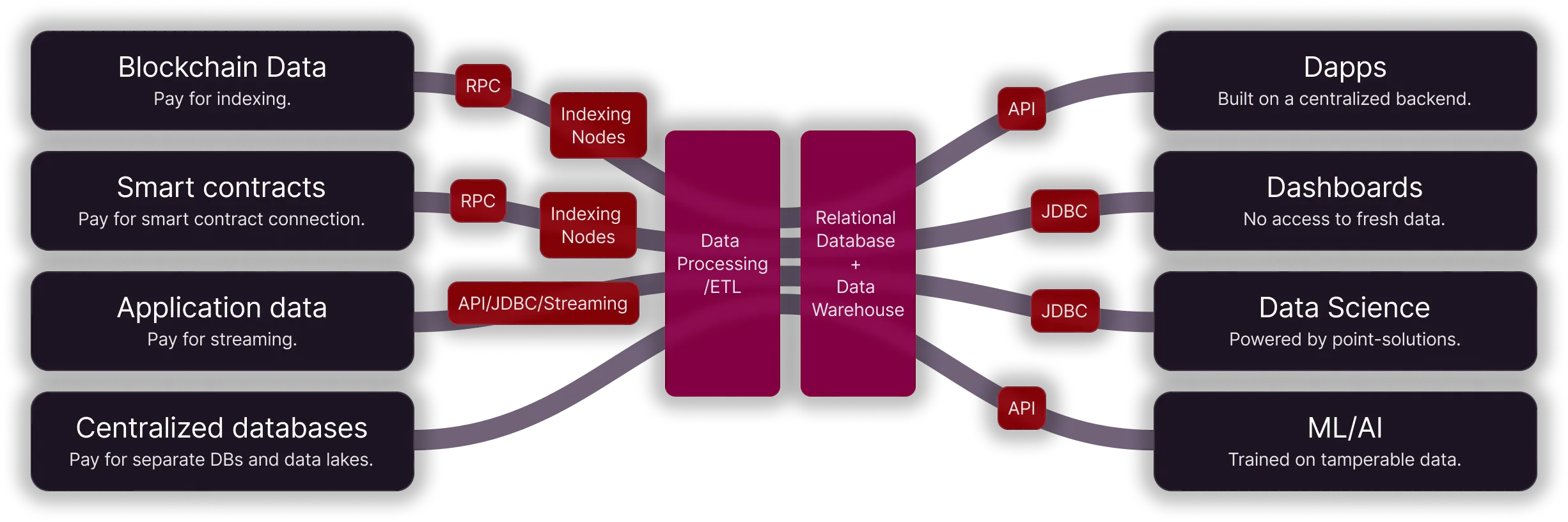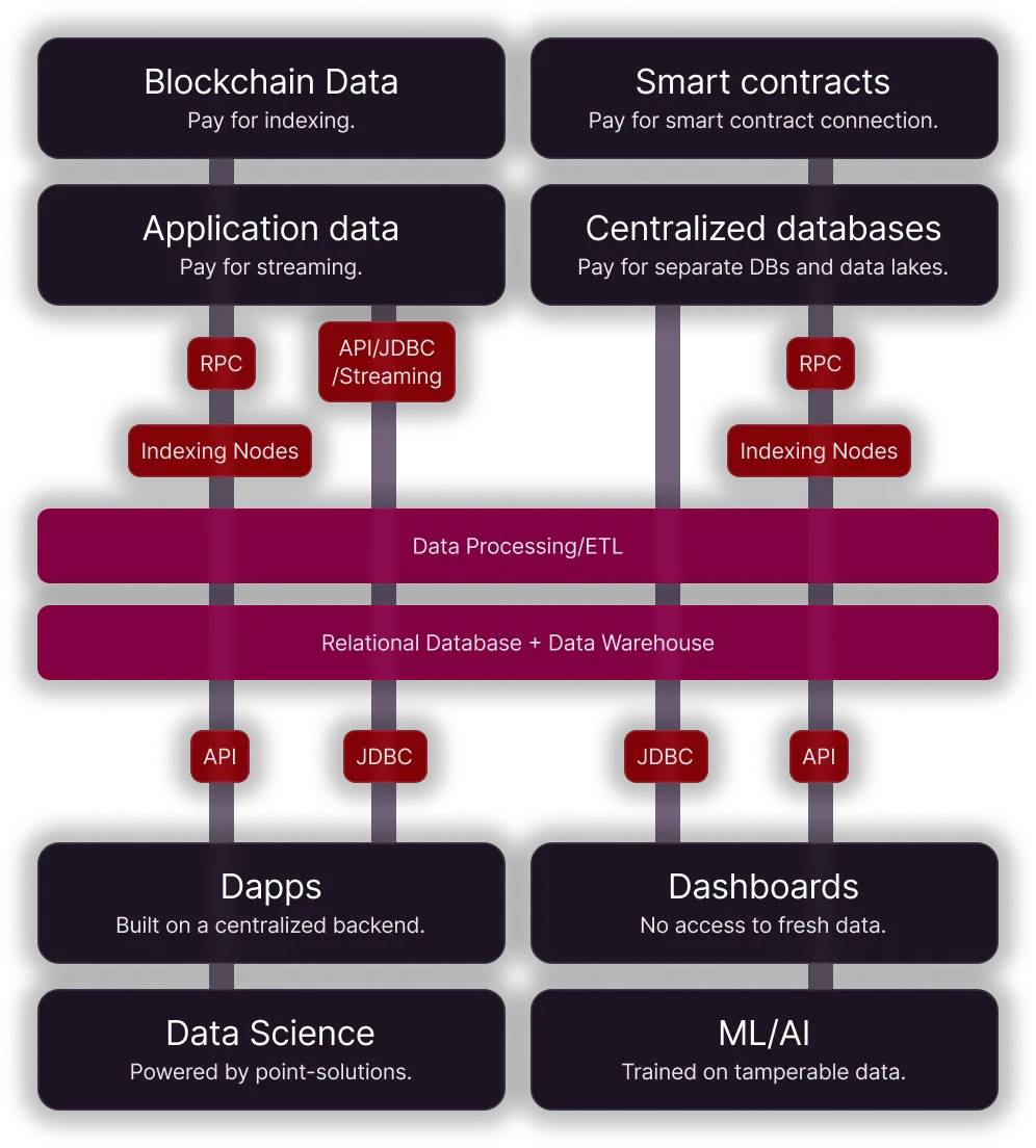 Space and Time indexes all major blockchains and stores the data in a relational state. Blockchain data is available for free.